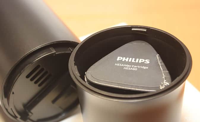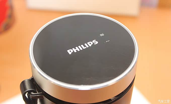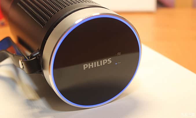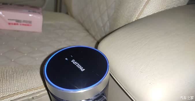 净化器一接电就会自动以低挡运行,开关机都有提示音,转换挡也有提示音,刚开始我以为是触摸按键,点了一翻没反应,上面这面板的PHILIPS就是按键,而且还要用点力按,一开始认为这样不好,但放到车上时才知道是对的,放到扶手箱杯架上刚好手可以放到净化器上面,这种按键不怕误触