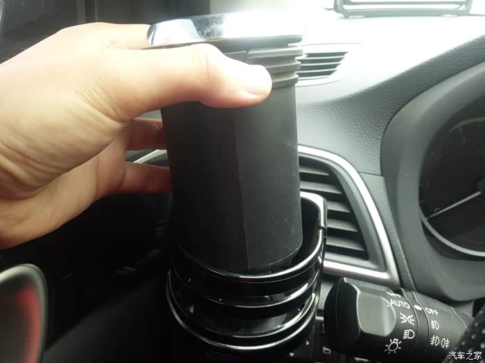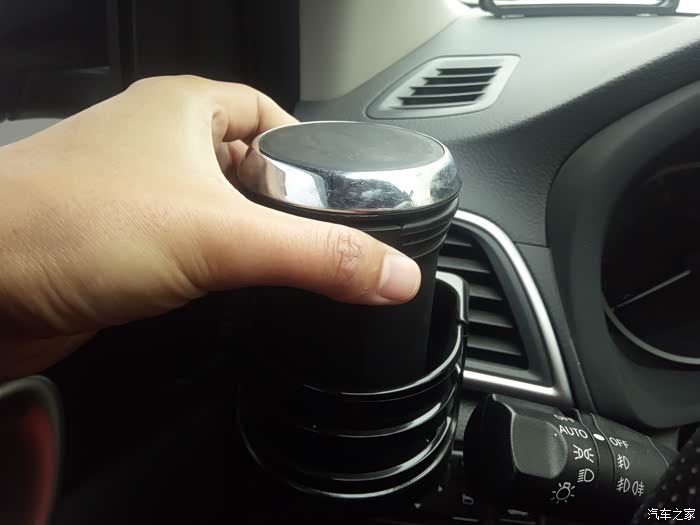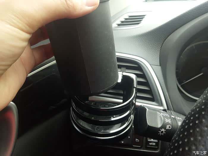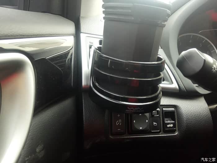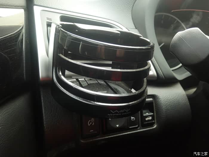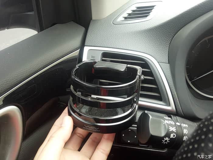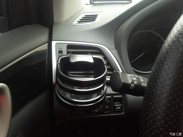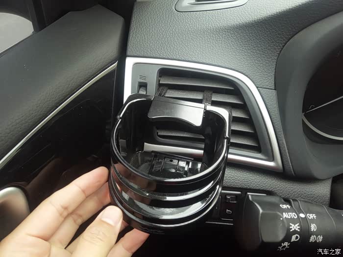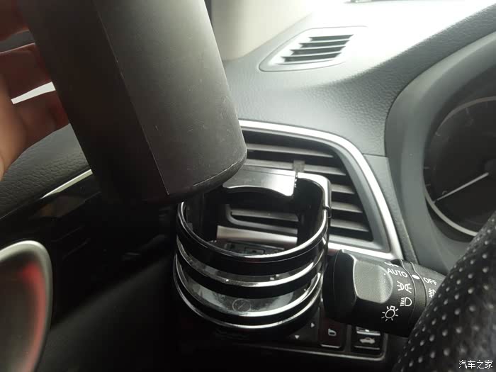 使用方法:在杯架的侧面,有一个遮挡的挡片,正常情况下,它的方向是水平放置的,无法直接放入水杯。需要用到杯架时,我们需要将挡片抬起,才能插入至杯架内。这点来看,挡片的设计,还是很有必要的。日常行车中,可以起到固定水杯的作用,避免出现撒溅情况。由于是固定在出风孔上的,不宜放置太重的物品,以免时间久了,出现格栅损毁的情况。