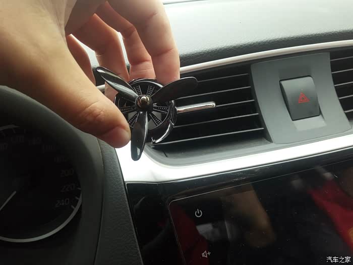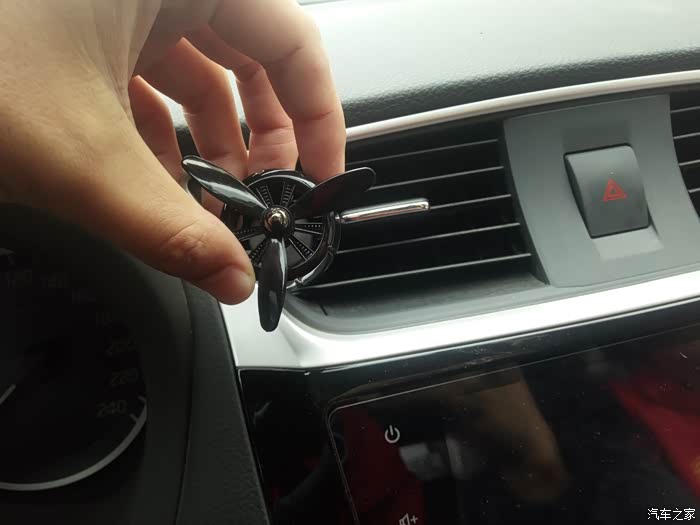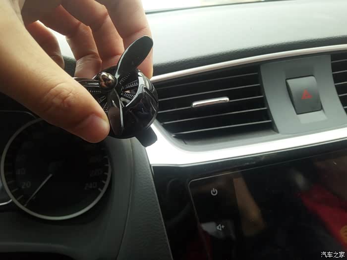 注意事项:由于是固体的香料,虽然没有特别大的毒性,但也需要告知孩子,不要擅自拿取,一面发生意外。更换香料时,要特别的注意,它的可旋转空间并不大,轻松旋转20度,即可打开,切记不可用蛮力,持续旋转,容易损毁卡扣,造成无法固定,无法装回的情况发生。安装过程中,它的底座是塑胶的,有一定的软质,且有一定的阻尼。固定在格栅上,需要有一定的力量,但也不宜太大,容易发生损毁,且遗留至出风口内,不宜取出。建议分享:整体来说,这款车用出风孔香水的设计非常个性,无论是更换香料,还是固定产品,都是非常简便的,容易上手。成本不高,价格不贵,适合购买两个,放在车内。消除异味,增加好的心情。提醒一下,香水不能有效的去除甲醛,所以即便使用香料,也需要定期开窗通风,确保身体健康。安装位置