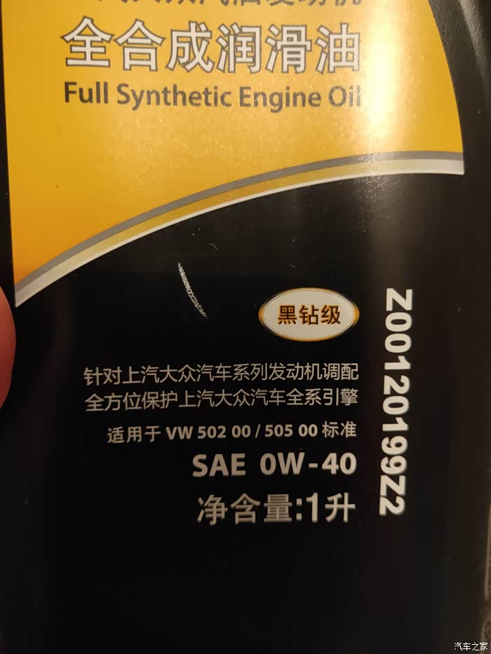 机油瓶上最容易找到的信息就是机油的型号和粘度,比如5W-40, 0W-40等。我要分享的这款全合成机油就是0W-40。这里有2个信息,一个是W前的数值,这个数值减去35就表示了此款机油可以使用的最低温度,比如5W-40就是可以在零下三十度地区使用,如果温度比这个更低,那这款机油就不能启动了。当然,对于我们中国的绝大多数车主而言,前面这个参数常见的就是5W和0W,这2种基本都是可以中国80%的地区使用了。因此,此参数其实不是很重要。