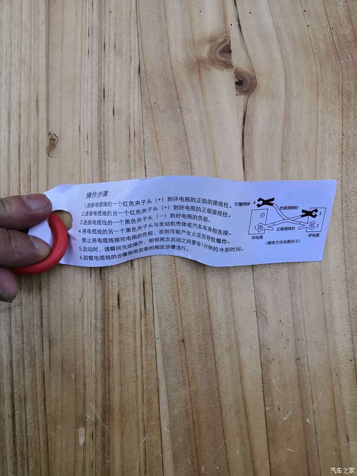 2. 随之按照上面图示的顺序,进行连接跨接电缆。可千万不要接反了电缆线的正负极,否则在搭上的时候会跳出火星,而且我们还要把电缆线与电瓶两级缠紧(充分接触),避免搭电途中出现跳火的现象。