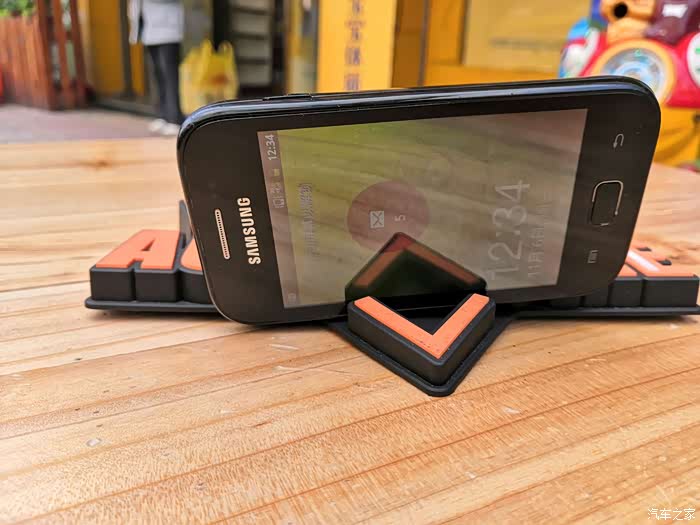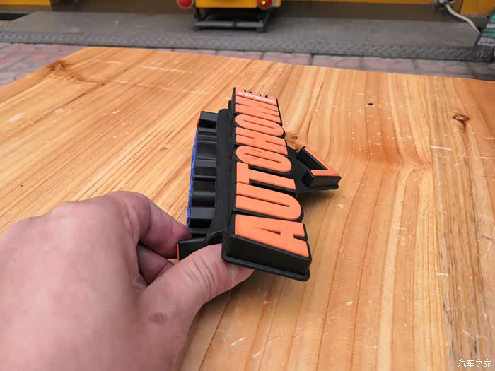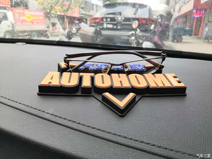 在AUTOHOME字样的两侧各有两只卡槽,左边的用来放置墨镜,右边大的用来放置手机。