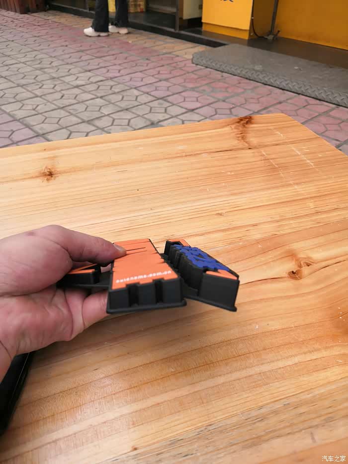 家家多功能防滑垫的颜色鲜艳,橘黄色、蓝色、黑色、白色,看起来?分醒目靓丽。三角形的轮廓,突出了品牌。