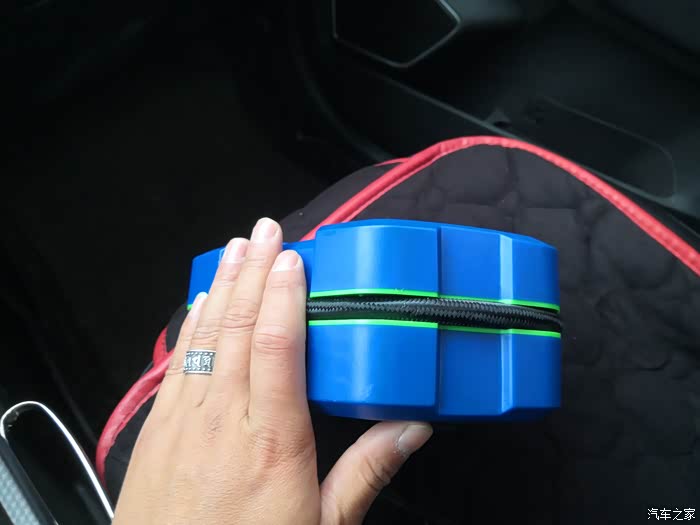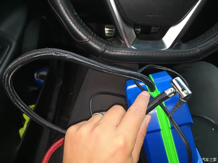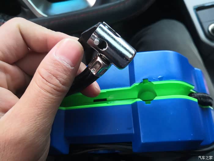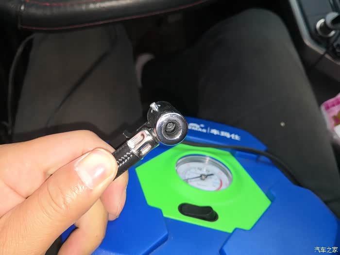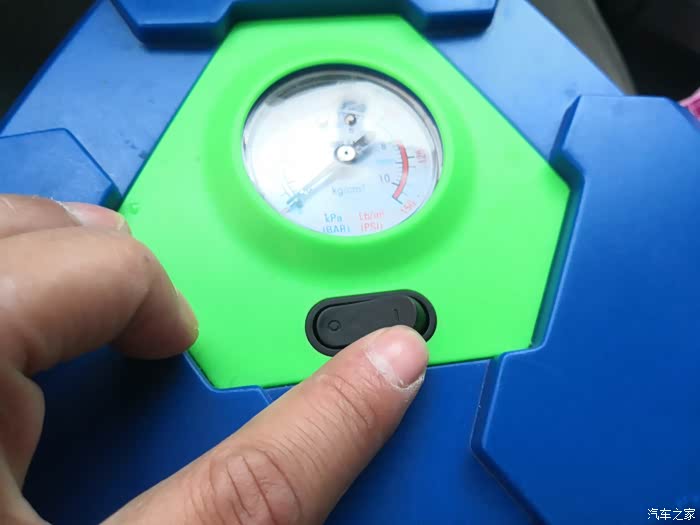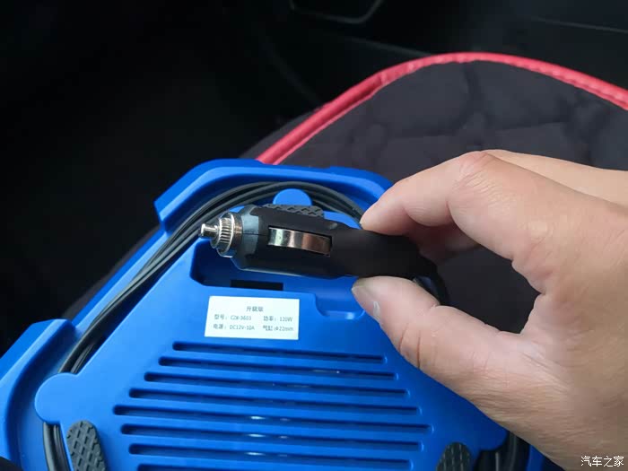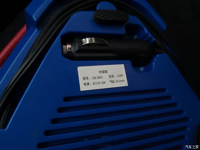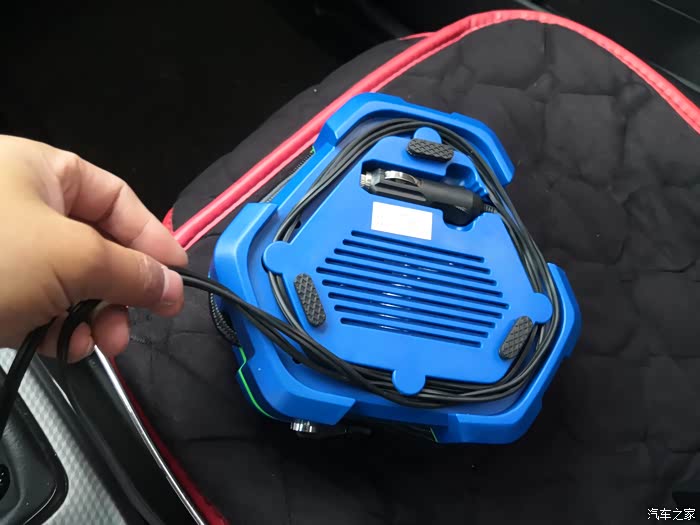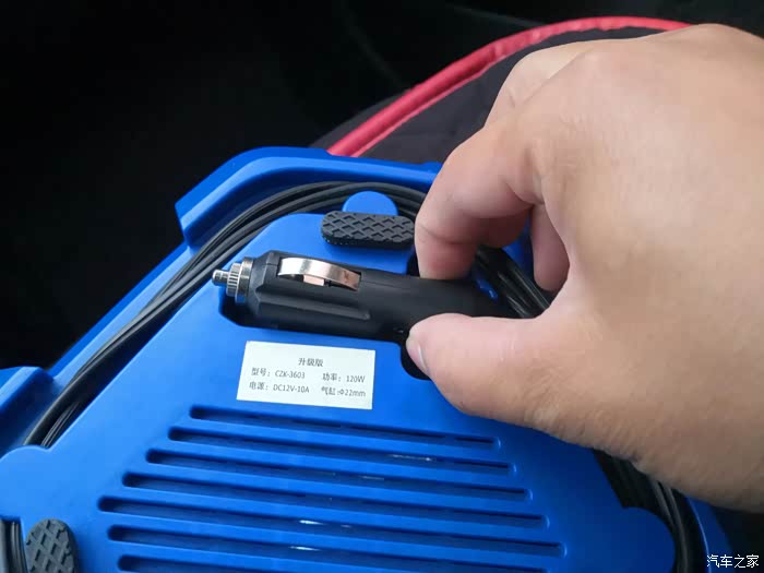 整个充气泵比较大,比较扎实看上去。机械式的指针,刻度很精细,指示比较精准。因为是车载式的,取电是在点烟处取电,直接插进去就通电了。 电源线比较长,四个轮胎都能够着。
