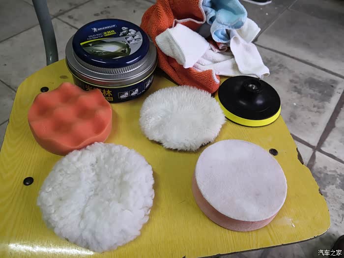 因为我比较喜欢自己动手,然后呢,又有 个无线手钻,所以买 个打蜡抛光盘,我买的是套装,打蜡,抛蜡,抛光,一次性搞定。