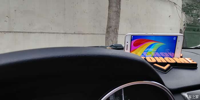后面的凹槽摆放手机,摇身一变成为手机夹。摆放在这个位置,开启手机导航,使用还是很方便的,不用低头的。