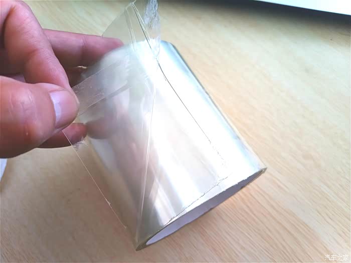第二部剪好大小合适的胶布,撕掉保护膜粘在漏水处。