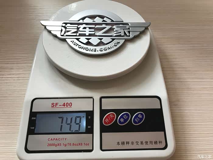 净重74.9克,这个我还会把他贴在我车上,也算是之家网友之间的一种认证