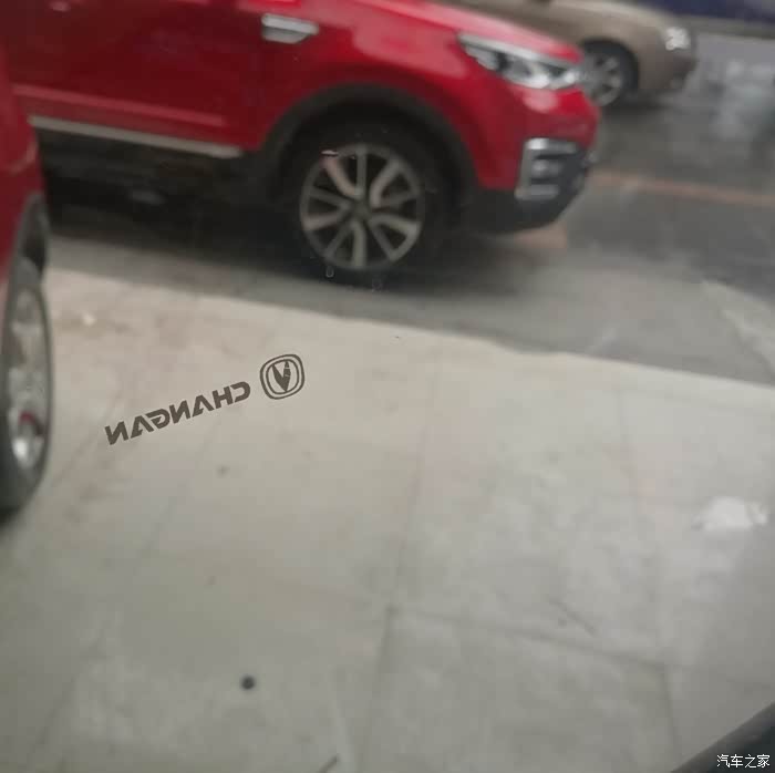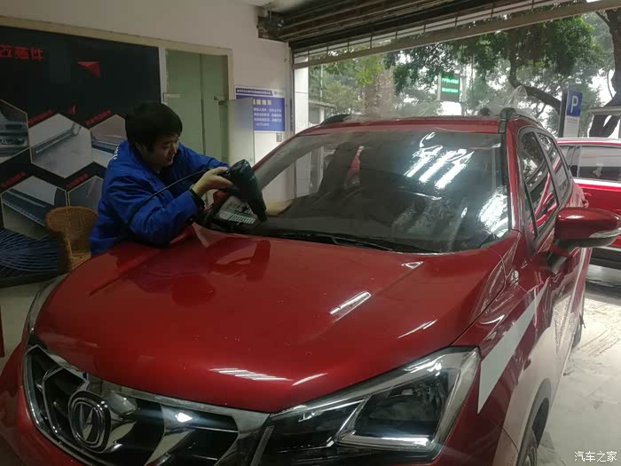 贴膜的时候来了一个CS55,红色。看起好好看啊,这个红色亮眼一些。整个车型也大气