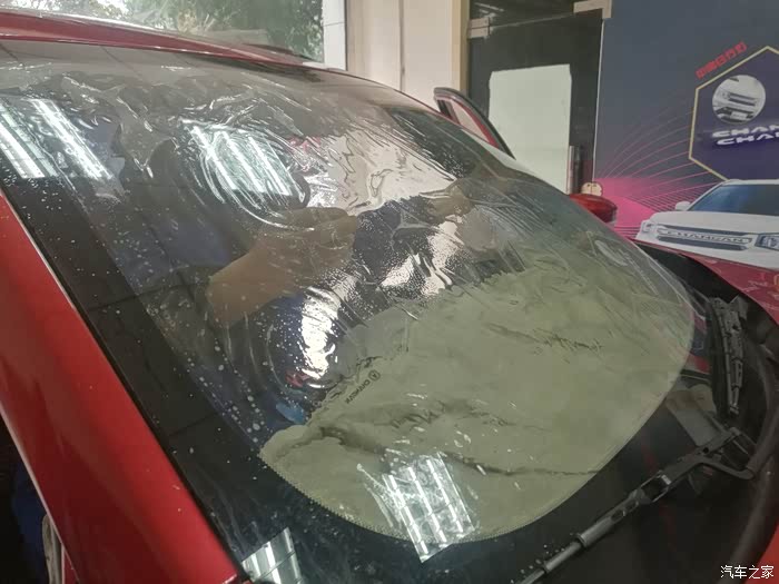 我的小车也避免不了贴膜这道程序,这已经和买了手机要套手机壳或手机贴膜一样的非常普遍的事情了。当然也有个别车主车友不贴膜的,不过还是少数。我这个贴膜就是4S送的贴膜。虽然估计送的贴膜好不到哪里去,不过免费的,不要白不要啊。先将就用着吧。还好去了4S,很爽快的给我免费洗车,然后就贴膜了。没有唧唧歪歪的,没有给你推销什么龙膜啊,加钱贴什么高级光学隔热膜什么的。全程大概一个小时左右吧。这免费膜还将就可以。侧挡玻璃大概算中隐,前挡外面看有点反光,里面看起还不错。。待历经时间的检验才知道到底如何。