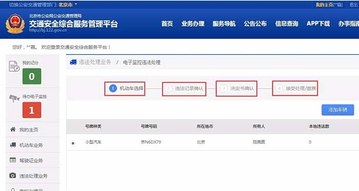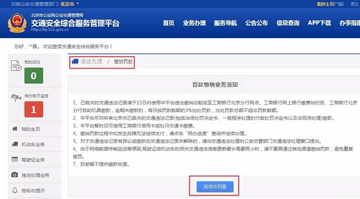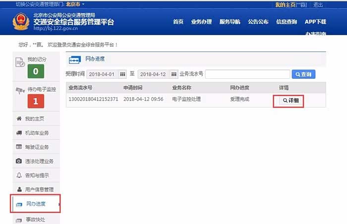 电子监控违法处理--在线办理,进来之后的界面。