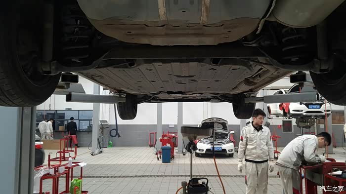 因为有个问题所以就直接跑到车间了,(这个问题到现在发现了两次,就是在肯定路上没有异物且非常平坦的路面上正常大概50左右的样子的时候 突然感觉后排或者是尾箱处好大的一声响声,第一次是在下高速的匝道处 当时还把车停下看了 所以才敢肯定没有扎到东西,但是车子也没发现什么异常,后来又发生一次这种情况)所以进入把这个问题反应给师傅叫他们顺便检查哈,最后也没看出什么来