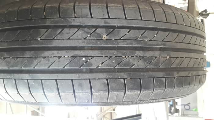 左后轮气压不够结果发现异常 有个螺丝钉 估计很久了 售后居然没有补胎的 到外面花了30大洋,插的好深里面都冒了一截出来 算了补个贵的算了 还有20的没用那种