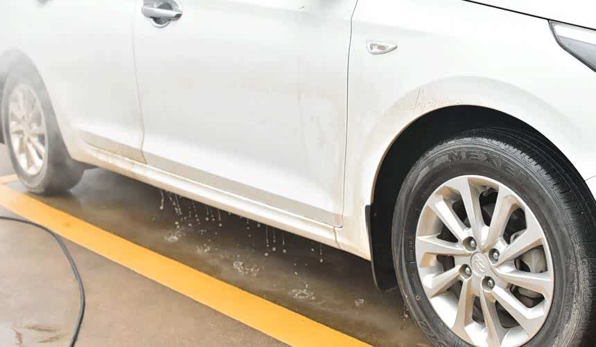 洗车的步骤就不一一介绍了,关键的是需要先将车身打湿,然后调节合适的水压将车身上的泥沙冲洗干净,尤其是轮胎周围。