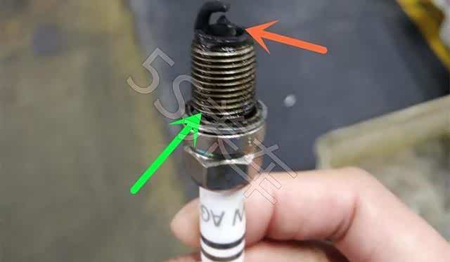 下图这是修车师傅拆下来的3缸火花塞,火花塞的电极上不仅存在大量的黑积碳,而且在螺纹扣上还有发动机渗漏出来的机油,修车师傅介绍,火花塞上的积碳绝大部分都是烧机油造成的,当积碳过多时就影响到火花塞的点火性能,甚至会直接导致火花塞不点火,而螺纹扣上的机油则是气门室垫漏油所带来的。