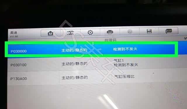 修车师傅将火花塞对调后,启动着发动机抖动故障问题依旧存在,但是用诊断仪诊断出来的故障码发生了改变,如下图诊断仪检测出来的结果,由原先的汽缸3检测不到发火,变成了现在的汽缸1检测不到发火,这就证明原先3缸上的火花塞是有问题的。