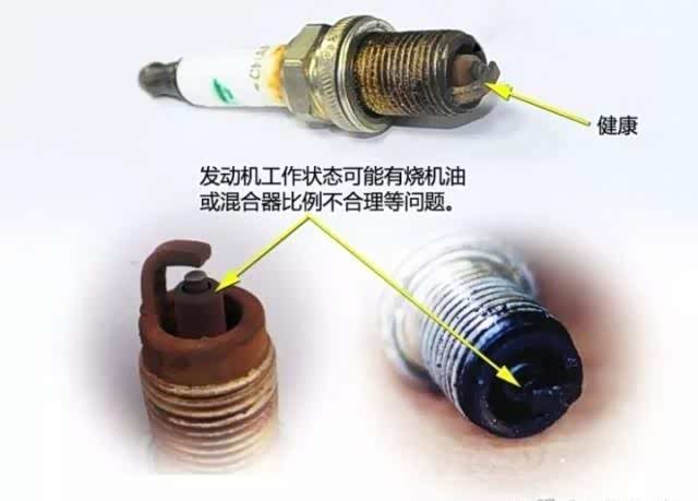 想检查火花塞状态是否健康,最直接地就是将它们拿出来看,如果电极以及绝缘体处呈淡黄色,则说明这支火花塞的工作状态是健康的;如果火花塞电极上有黑色的附着物,就是有病症了,这可能是由于“烧机油”或混合器比例不妥造成的。