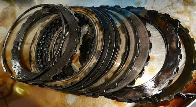 烧坏的离合器片可以说,惨不忍睹呀。这是变速箱高温的明显铁证。可以说糊了。必须都要换新的了。