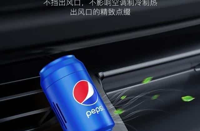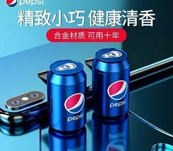 上面介绍这两款,一个是进口品牌的代表作,一个是国产品牌的代表作。车香在国内还有很多品牌生产,也有很多做汽车配件的品牌找车香厂商代工。整体来说,以价格抢占市场的,产品普遍劣质,当然不排除性价比很高的产品。另外,如果找代购采买国际品牌的,要小心,车香领域水很深,很多使用劣质香精充国际品牌的事被曝光过。下面这款,是百事进军汽车用品领域的产品之一。百事(pepsi)汽车香水