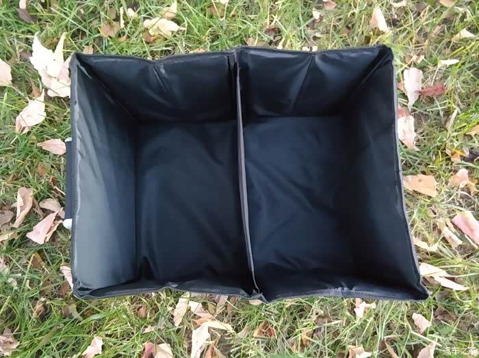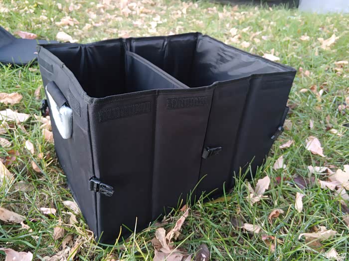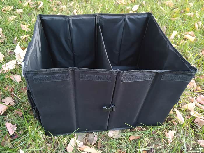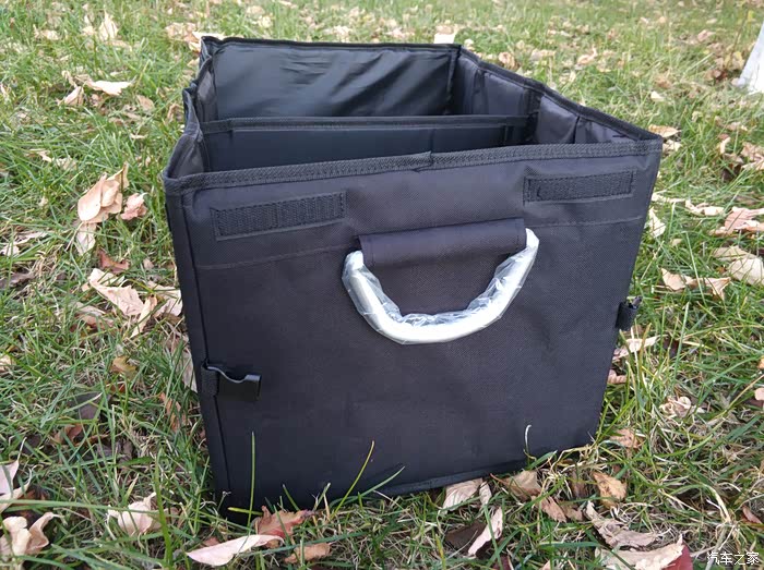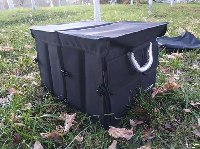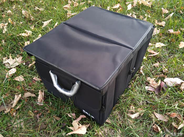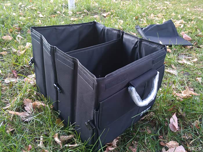 这款折叠箱最大的优点就是,当不使用的时候可以直接折叠,非常容易收纳。整个折叠箱表面看起来像帆布,还是比较耐磨的。整个是黑色的,正面有汽车之家的LOGO。把手材质很好,摸起来很光滑,而且放重物搬运,也不会有勒手的现象。因为表面材质比较耐磨,所以手感摸比较粗糙一些的。折叠后非常小,一点都不占用空间,组装也比较省事,底部和四周材质也比较硬朗,不会有那种软丢丢的现象。放在车上,收纳箱可容纳的东西也挺多,而且还有盖子,可以很好的起到防尘作用的,用的是魔术贴的固定方式,打开关闭都很节约时间的。中间有隔布,可以分两端放物品,我是打算放洗车用的喷剂类和维修工具,因为中间有这个隔布,分类还是非常的方便。当放入东西多的时候,这个箱子会有点走形,他的侧面有带子,是卡子卡的,直接卡好,就不会走形了。这样上面的盖子就比较容易盖好。侧面有向个口袋,可以放入一些小的东西,我觉得还是非常实用的。底部的隔板也比较硬朗,来回移动,也不用担心底部会掉下来的。当不想使用的时候就可以直接收缩折叠。