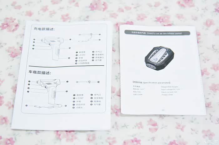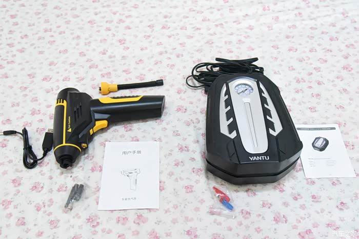 1、外包装上沿途车载充气泵上的产品及厂家的信息非常的全面,例如充气泵试用的电源功率等等都非常的而全面。而翼云车载充气泵除了厂家一个简单的贴牌之外没有任何中文的产品说明,所以在开箱评测缓解沿途车载充气泵由于纤细全面胜出。2、开箱后发现这两款充气泵都赠送了三个充气嘴,方便对球类等进行充气。是一个非常不错的用途扩展功能。3、这两款车载充气泵最大的区别就是翼云车载充气泵是无线款的而沿途车载充气泵是有线款的。在使用的便捷性方面鲜艳沿途的要麻烦一些,因为要连接电源线。4、沿途车载充气泵的胎压表是机械表无特殊的功能,翼云车载充气泵是液晶显示的胎压表。所以在使用的时候有预设胎压进行充气的功能。胎压表方面翼云胜出。5、在充气的过程中发现翼云无线车载充气泵只能给一个严重缺气的轮胎进行充气,然后就没电了,没法连续使用。而沿途的因为是试用车辆电源所以可以连续使用。6、我感觉要是不是翼云的电磁不耐用有缺陷肯定是翼云在对比评测中胜出。所以还有是沿途车载充气泵胜出吧。说明书