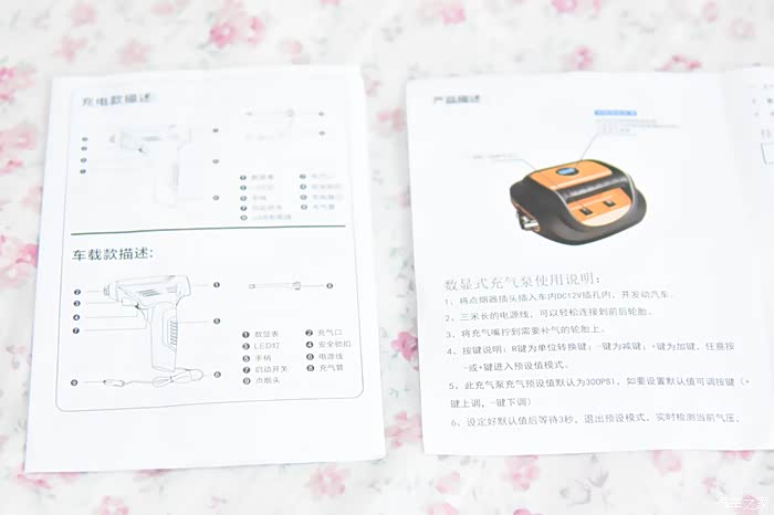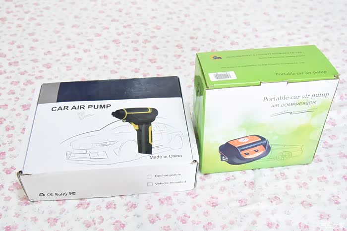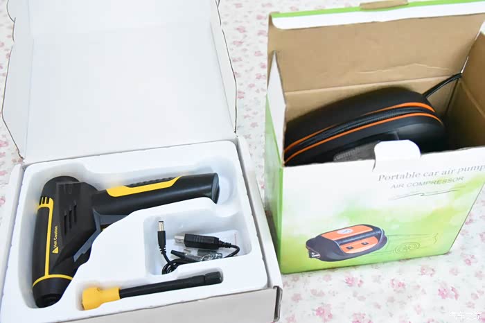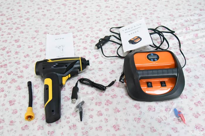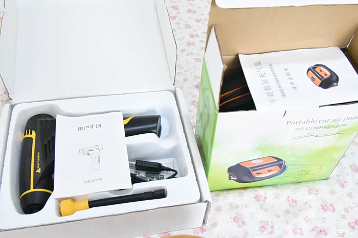 1、从外包装上看这两款车载充气泵都是彩色外包装,但是都是贴牌产品。在产品外包装上除了简要的厂家信息贴牌之外的所有文字都是英文的这种英文的说明有害不如没有呢,因为我是中国人,我要看中文的说明。为什么要是英文的说明呢。索爷暂时对外包装差评好了。记下来进行产品展示评测吧。2、从外观上看到这两款充气泵的区别很大,翼云车载充气泵是枪形的外观设计并且是无线款的,它内置了电池,可以做到无线连接就能给车辆充气的目的。而领臣车载充气泵是有线款的,必须要连接电源线才能够进行使用。3、经过试用,这两款车载充气泵都是可以预设胎压款的车载充气泵,能够达到也射好胎压后按启动开关然后充气泵自动进行充气。当轮胎的气压达到预设的胎压后。会自动停止充气。是一种非常不错的设计。陵城车载充气泵是快接充气嘴要比翼云的论文接口在使用时连接更加的便捷。但是五香充气泵可以没有电源的约束,更加适合车家两用。4、他们的缺点有什么呢个?最重要的缺点是领臣车载充气泵在使用发热后胎压表不准,而翼云车载充气泵的电池不耐用所以这两款车载充气泵我都不建议大家进行购买。使用说明
