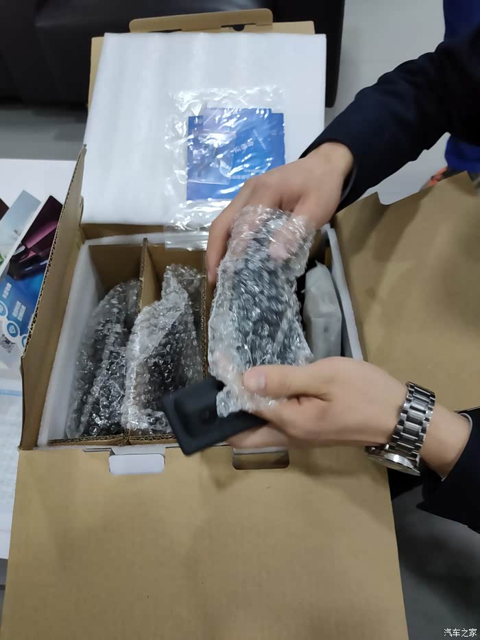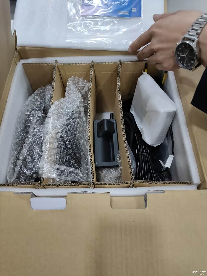 由于自己有一些厂家给的福利积分,所以用积分在4S店里面兑换了一套原厂的360全景影像系统 。今天就和大家分享原厂的360全景影像系统 。根据自己开箱时观察到的情况,整个影像系统包括了车前端和车后端的摄像头以及左右两个反光镜下面的摄像头 ,还有一个维持整个影像系统工作的主机 ,当然还得有传输数据的各种数据线,从下图中就能够看到这些配件比较多,感觉安装这个会比较复杂, 咨询了店里面的安装师傅说是店里面安装这个系统也是会花费比较长的时间所以工时费也是比较贵的 。