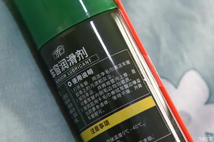 2、此款产品经过试用不但能够防止车窗卡顿起到润滑的作用,家里的门轴有异响喷一喷也有润滑消除异响的作用。我车上用剩下的就在门轴处用了用。还是非常好用的。