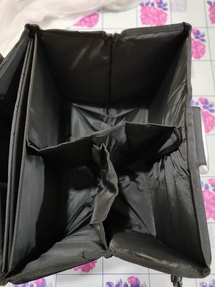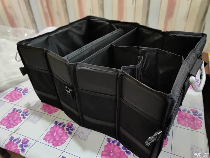 经过试用我发想这款整理箱有特点如下:1、开箱过程中发现这款整理箱只有简单的外包装,上面简单的粘贴了一个商品的信息贴纸,贴纸上的信息也只是做到不算三无产品的前提,对这样的包装设计只能说呵呵。2、原本以为里边的产品也是马马虎虎,没想到开箱后发现产品的质量和包装形成鲜明对比,不论是产品的材质还是产品重量和设计理念都非常不错3、在使用过程中发现产品没有使用说明书,好在东西不复杂经过简单摸索就可以找到使用方法,整理箱上不同的卡口设计能够轻松应对日常生活中绝大多数车型的后备箱。4、黑色的牛津布耐脏耐磨,是折叠整理箱首选的材质,但是再耐脏也有需要打理的时候,这时候就会发现牛津布材质非常不好打理,这算是美中不足之处。