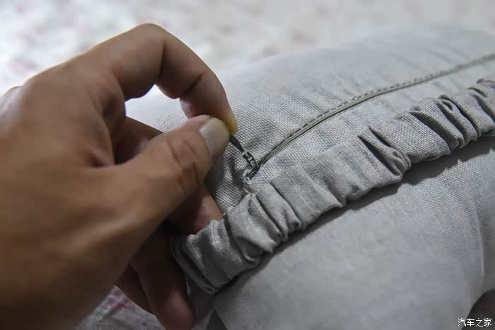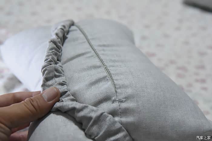 1、首先就说说这款汽车之家头枕的的做工,这款汽车之家的头枕外层为布料的,布料应该是棉质的,透气性非常的不错,也方便清洗。在头枕的面层上还有一条2-3厘米宽的人造皮革装饰条,在装饰条上有汽车之家几个中文字还有气场之家的网址。看着挺舒服的。