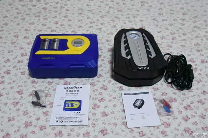 1、开箱评测:在开箱的过程中发现这两款车载充气泵在外包装上的,产品信息及数据都非常的全面。一看就知道是正规厂家生产的。为这两款车载充气泵点赞。2、展示分析:这两款车载充气泵都是有线款的车载充气泵,取电的方式固特异的为点烟器及电瓶双取电,任选其一即可。沿途车载充气泵为点烟器取电。在取电放方式中固特异更胜一筹。这两狂车载充气泵的充气嘴接头固特异的为快接接头,沿途的为螺纹接头。安装边界向上固特异更佳。两筐车载充气泵的充气管都能隐藏收纳,电源线沿途的无收纳设计、固特异的有隐藏收纳设计。收纳的整洁性反面固特异胜出。3、试用感受:固特异的是双缸预设胎压充气泵充气比单缸的沿途充气泵充气快还便捷。照明灯方面固特异的灯光只有一个还是接通电源就亮的无法关闭。沿途的照明灯有开关控制,并且有警示灯。计量用的胎压表两筐充气泵都挺准确,但是固特异的更加精确。试用结论:两款车载充气泵都非常的实用好用,都值得推荐。对比评测中固特异优势胜出。细节