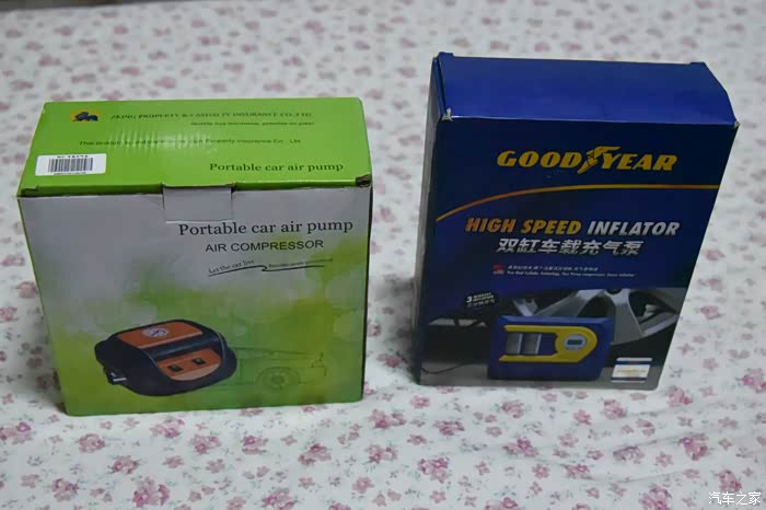 在开箱的过程中发现固特异的包装较完善信息全面,领臣车载充气泵属于贴牌产品,包装箱上没有详细的产品性能信息。开箱评测固特异胜出。在开箱之后,对产品进行观察。发现这两款产品都赠送了三个气嘴。防病给篮球等进行充气还是非常的人性化的。但是领臣车载充气泵的电源线不能完美隐藏收纳,有设计缺陷,而固特异的隐藏收纳功能都正常,所以展示评测固特异胜出。在使用的过程中发现领臣车载充气泵在使用发热后胎压表计量不准去,而固特异车载充气泵在使用发热后还是准确的。这两款车载充气泵就是有线预设胎压车载充气泵并且都是快接充气嘴,这还是不错的设计。在充气对比中哥特意车载充气泵充气速度较快。总的来说车载充气泵的胎压表必须准确才有用。所以固特异车载充气泵胜出。盒子对比
