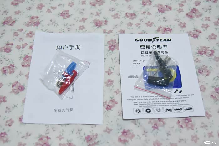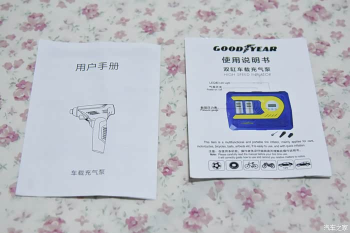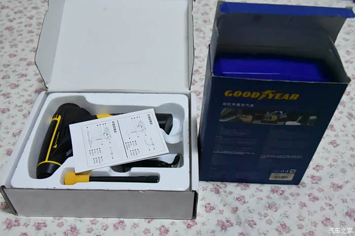 在开箱的过程中发现产品的外包装上,还是固特异的产品包装比较好,运营是不当对产品进行了展示,还有详尽的产品相关数据,方便我们对产品进行了解。而翼云充气泵的产品外包装上全是英文只有简单的生产厂家信息。根据以往的购物经验,这款 产品应该是贴牌产品。