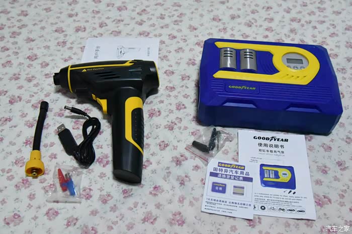 固特异车载充气泵胜出,因为好用充气快,还能连续给轮胎进行充气 。