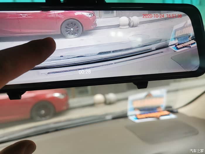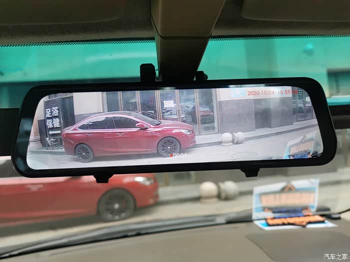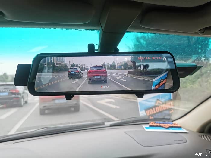 除了风格方面的问题,最大的问题就在于行车记录仪上的镜头调节角度有限,因为在驾驶室内后视镜是偏向于驾驶位置方向的,摄像头朝左边已经调整到了最大的角度,总体还是偏向于右边一点 。
