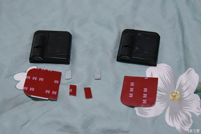 2、此款迎宾灯非常人性化的送了大小四个3M双面胶,大的装面胶是用来粘贴迎宾灯固定的,小的胶贴是用来粘贴磁铁的。