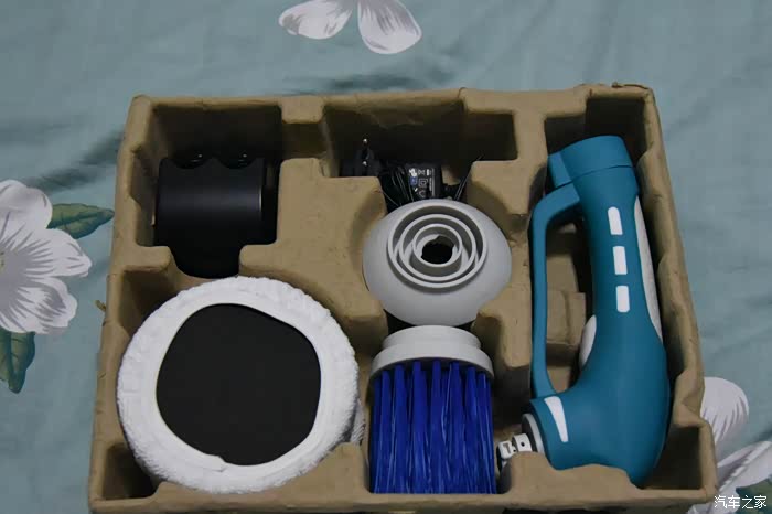 2、打蜡盘抛光盘及抛光毛巾套具有配置。还有洗轮毂用的刷子。总的来说配置还是叫人满意的。