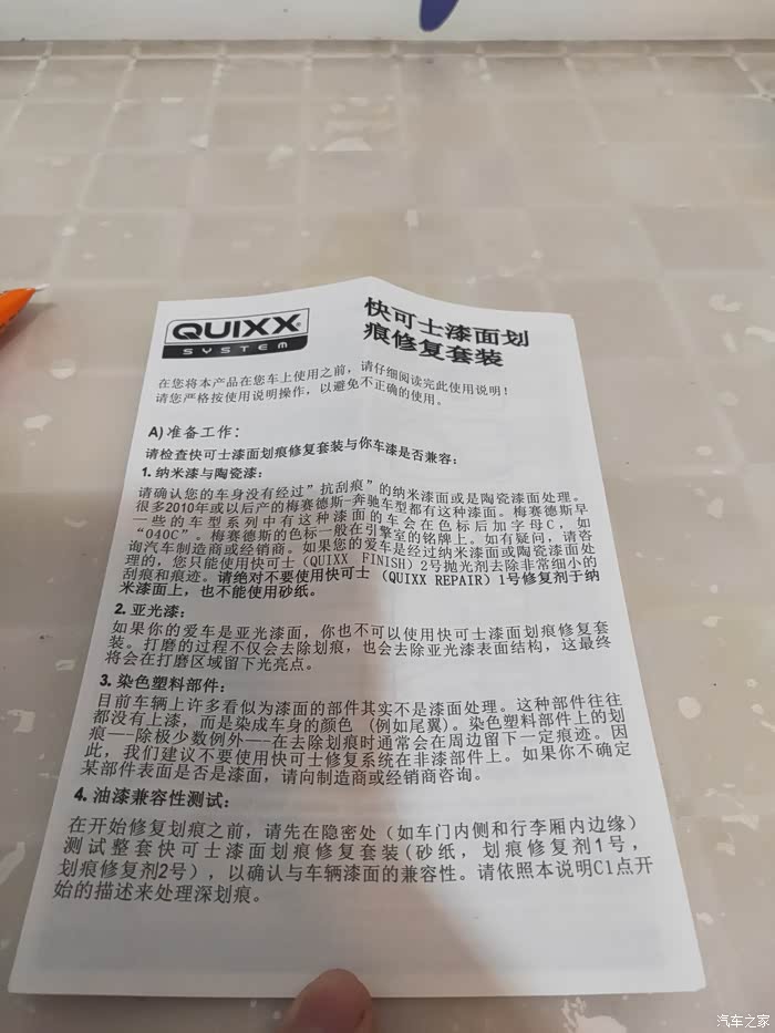 体验心得:目前来说自己还未使用这款产品,希望以后也尽可能不用到。从说明书上介绍它对小划痕修复是挺方便的,防水防锈。如果大一点的划痕,我是建议专业的问题找专业的人员解决