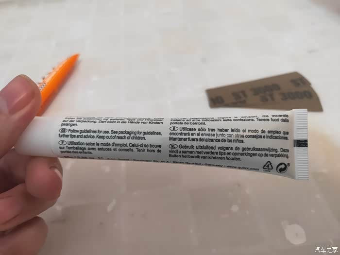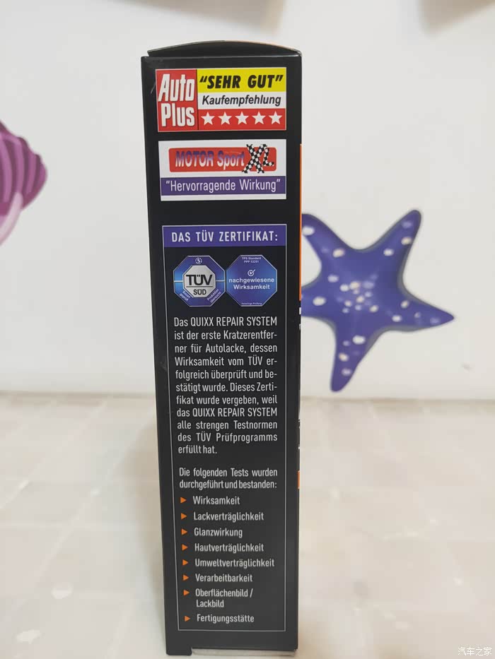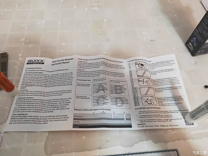 包装的反面终于看到了熟悉的中文,这个中文介绍应该是后来整体粘贴上去的,从中文介绍了可以大概了解到这款漆面修复剂是国内的某企业从国外代理的,所以包装盒外边大部分都是外文介绍也就不难理解了。