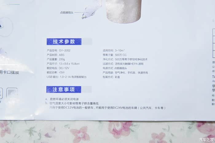 固特异GY-2052型车载空气净化器-这款车载空气净化器是我使用的第一款车载空气净化器。这款车载空气净化器的来源渠道是在家家众测的相关栏目看直播开盲盒活动中获得的。当时这款产品我可是心仪了很久的。就想开盲盒开到这款产品。结果开第三次就开到了,真的是好开心呀,这款车载净化器是多功能车载空气净化器,它的具体请款是怎么样的呢。还是来看看我接下来的宏观评测吧。