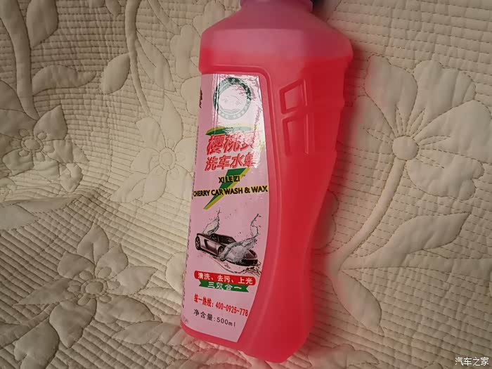 一款跟洗面奶一样的水蜡,樱桃爽洗车水蜡,自己就可以给车打蜡。