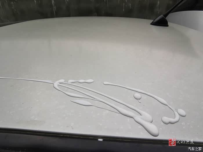 引擎盖上洗车没有洗掉的一些污点.