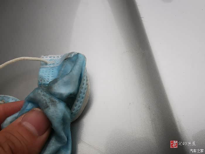 正要施工的时候,突然发现车内没有干净的抹布,发现还有口罩,直接用口罩试试吧!