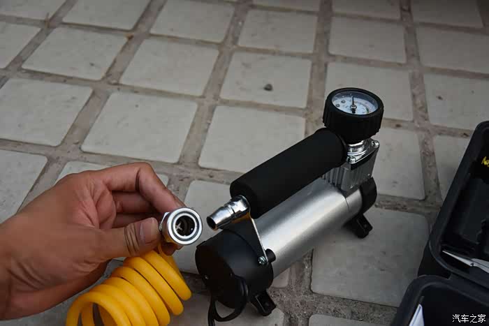 虽然可以给电动车充气,不过还是要在汽车上面取电的