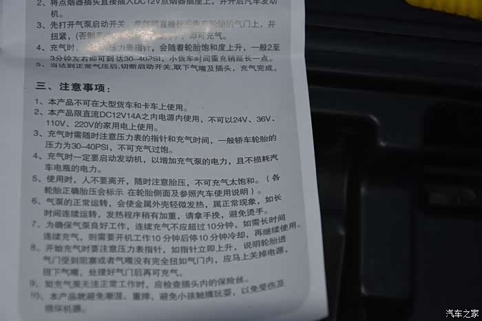 2、这款气泵只适合小型汽车,不适合大型货车和卡车;