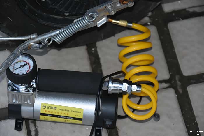 1、要先开充气泵,然后再讲气嘴连接轮胎的气嘴;
