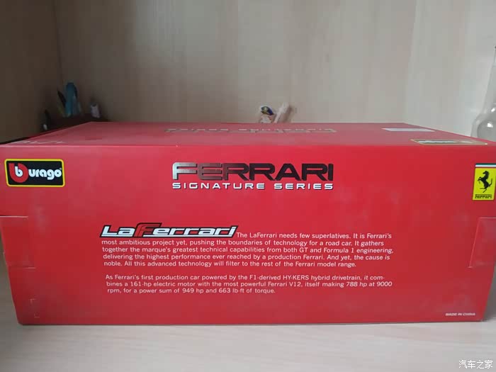 大家好,这次评测的是一款比美高1:18 法拉利 Laferrari 车模,仿真合金跑车车模,是9月30日天天省钱买直播中奖的,第一次中这么大的奖品,真真太开心了,非常感谢!这款法拉利 Laferrari 车模前盖可开、左右车门可开、后盖可开、四轮带避震功能可滚动,前轮可与方向盘联动转向,可以说相当帅气,包装和做工都很精致,和真车相似度更高,很有质感。下面就来看看我的车模吧。