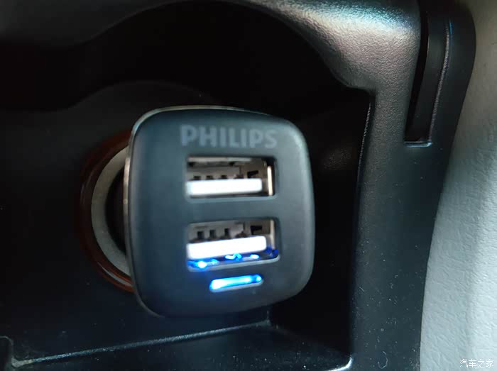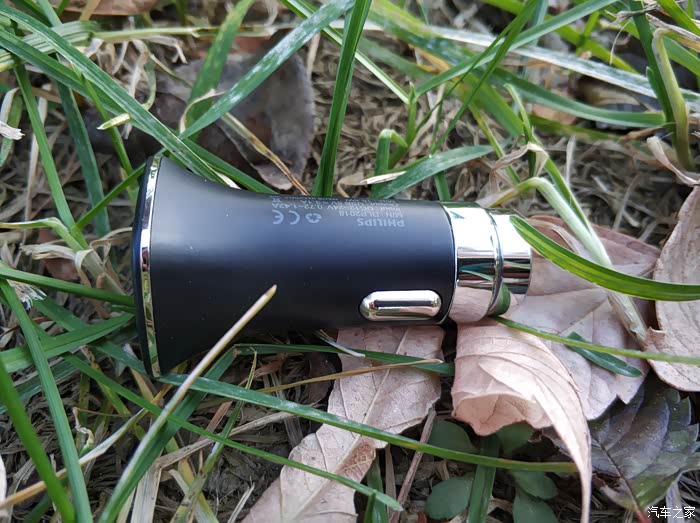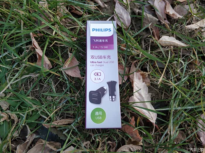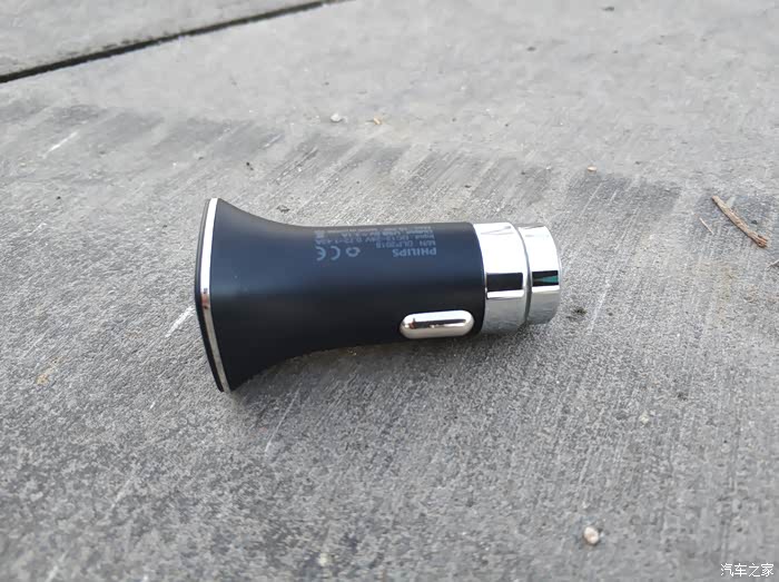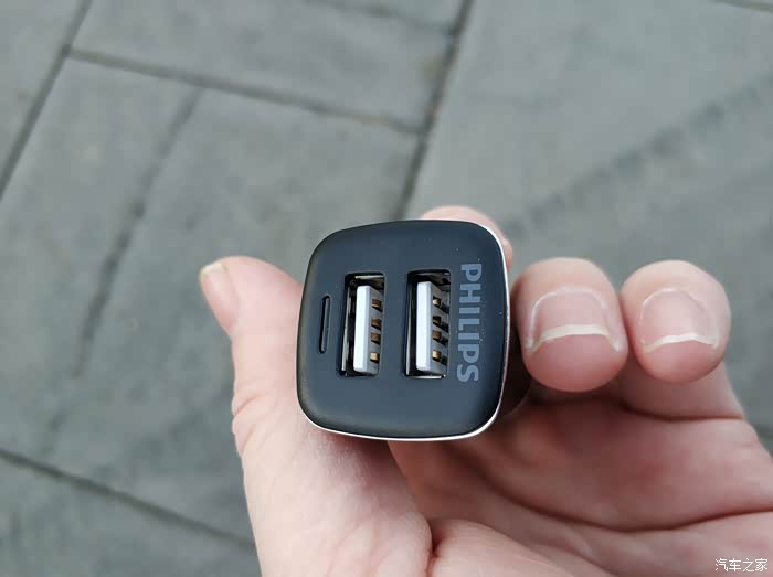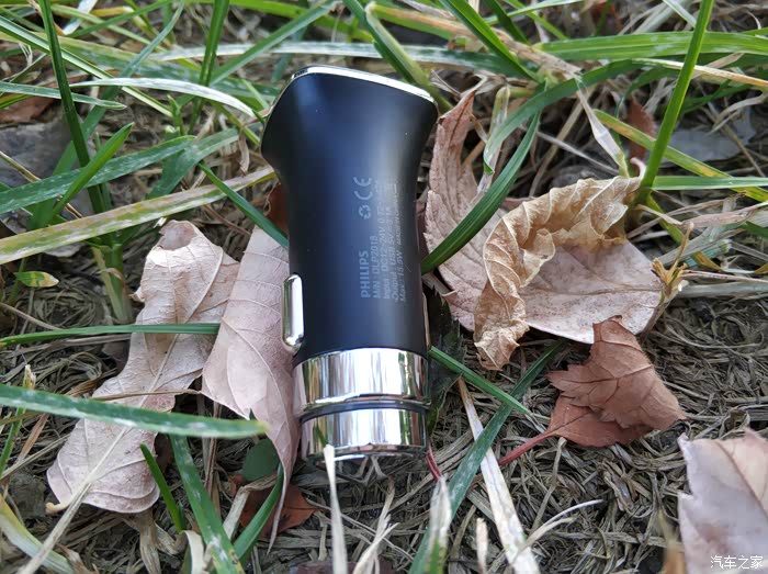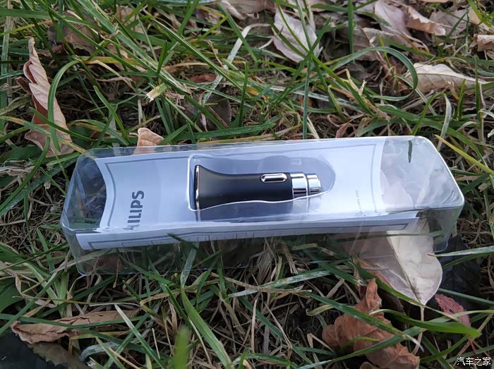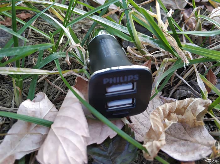 因为当时是从汽车之家的积分兑换商城里换的,所以在车充的侧面会有汽车之家的LOGO,另一侧是品牌飞利浦的LOGO,还有产品上的信息。