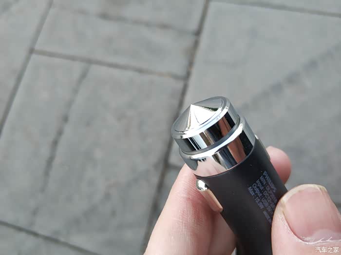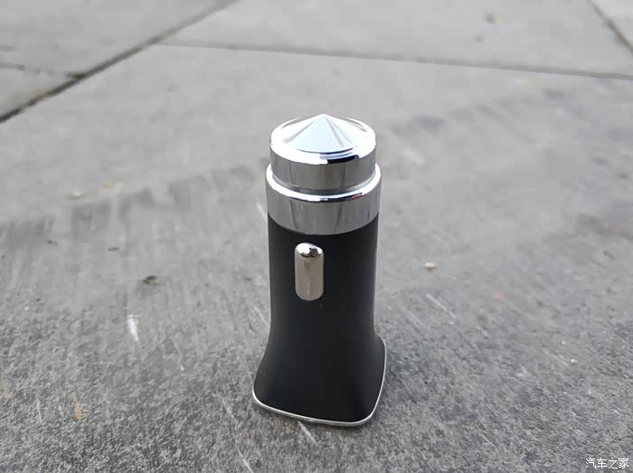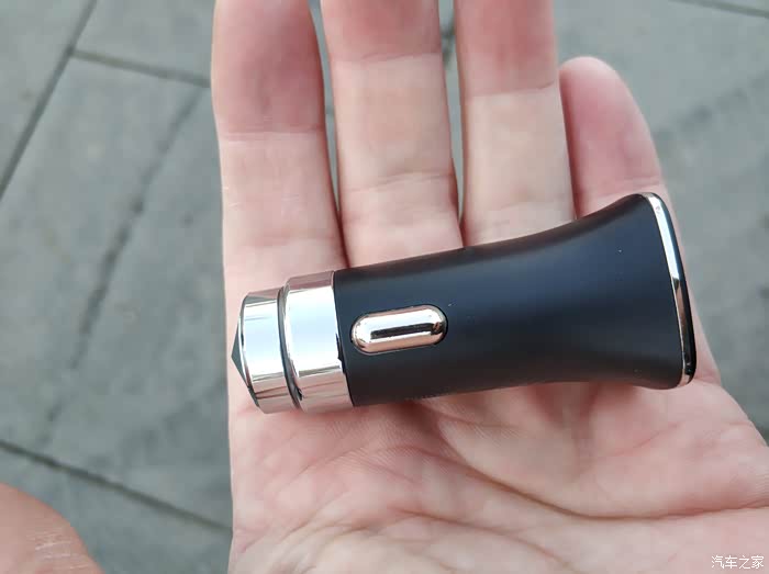 产品在整体设计也没有什么特殊的形状,我觉得外观比较大众化,看起来也是很普通的。车充拿在手上略微有点分量,压手感还是有点的。这款两则突起是有伸缩的,在插入点烟器的时候可能会有点用力,这也是正常的,在点烟器通电后会有蓝色灯亮起,灯亮起后就可以直接使用,通过数据线进行充电了。
