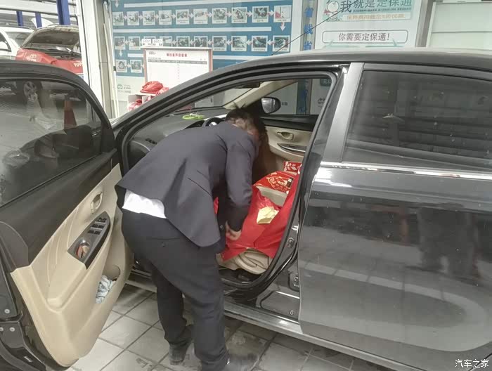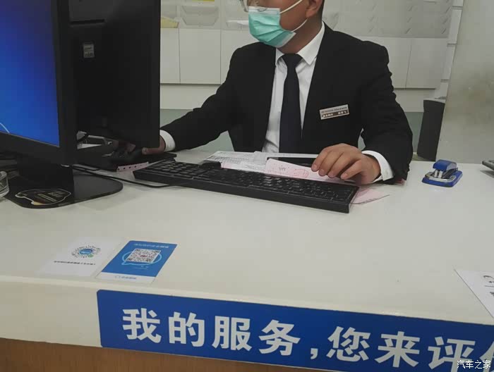 前台接待的帅哥开始登记我的车,并且把座套铺上。
